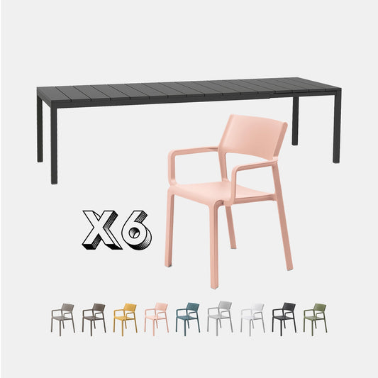 Dining Set - Cube 140x80 Garden Table & X6 Trill Armless Chairs