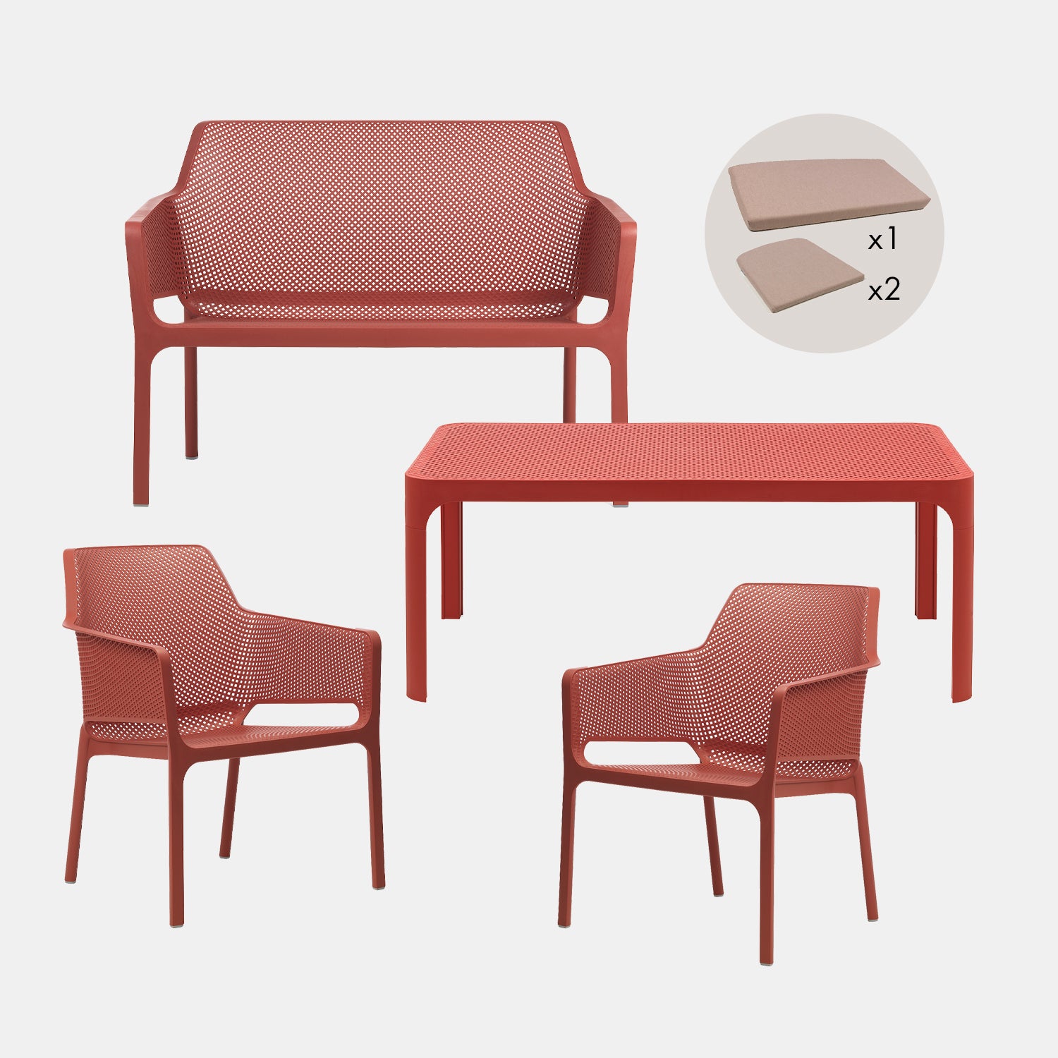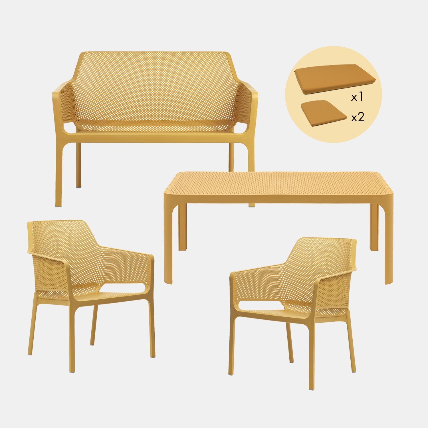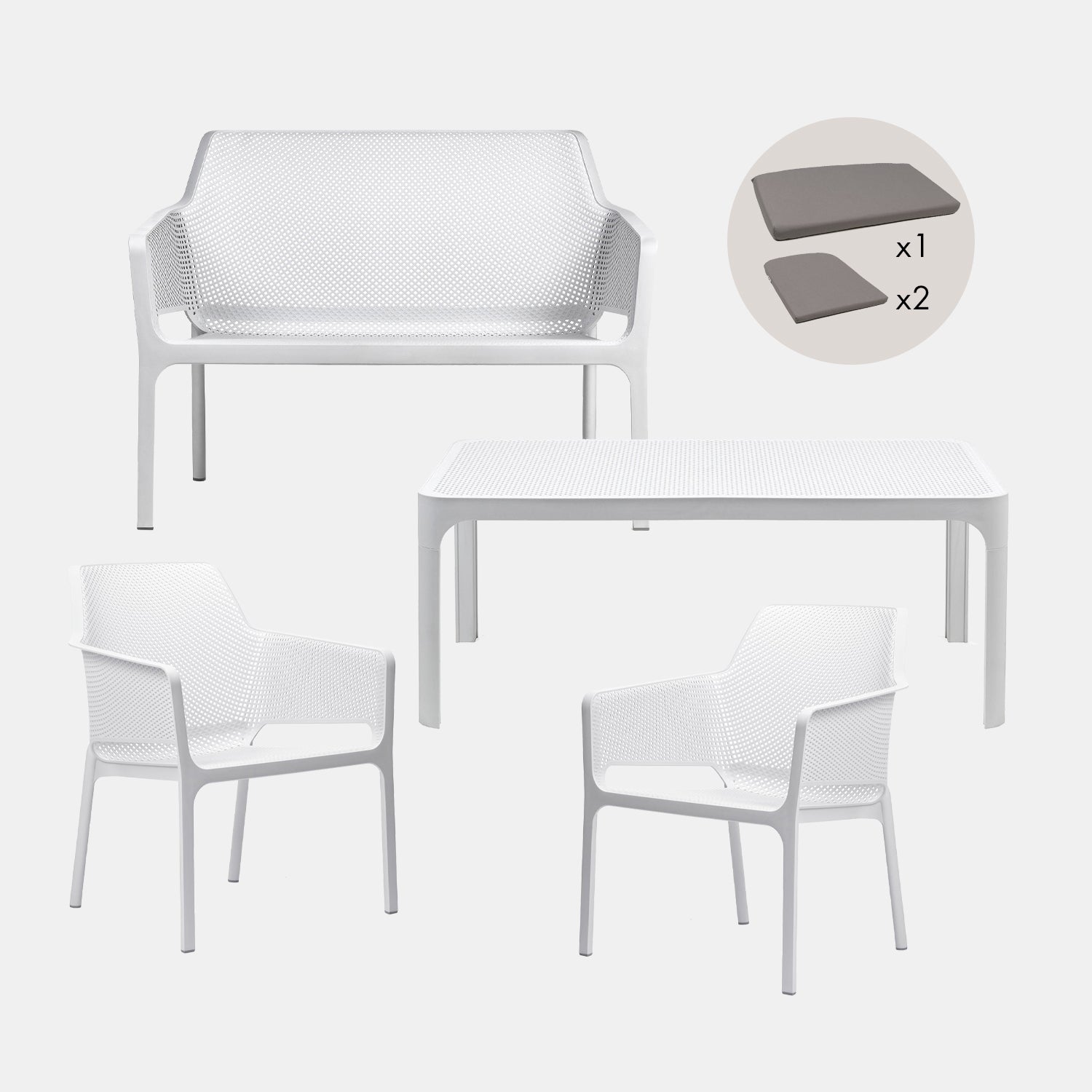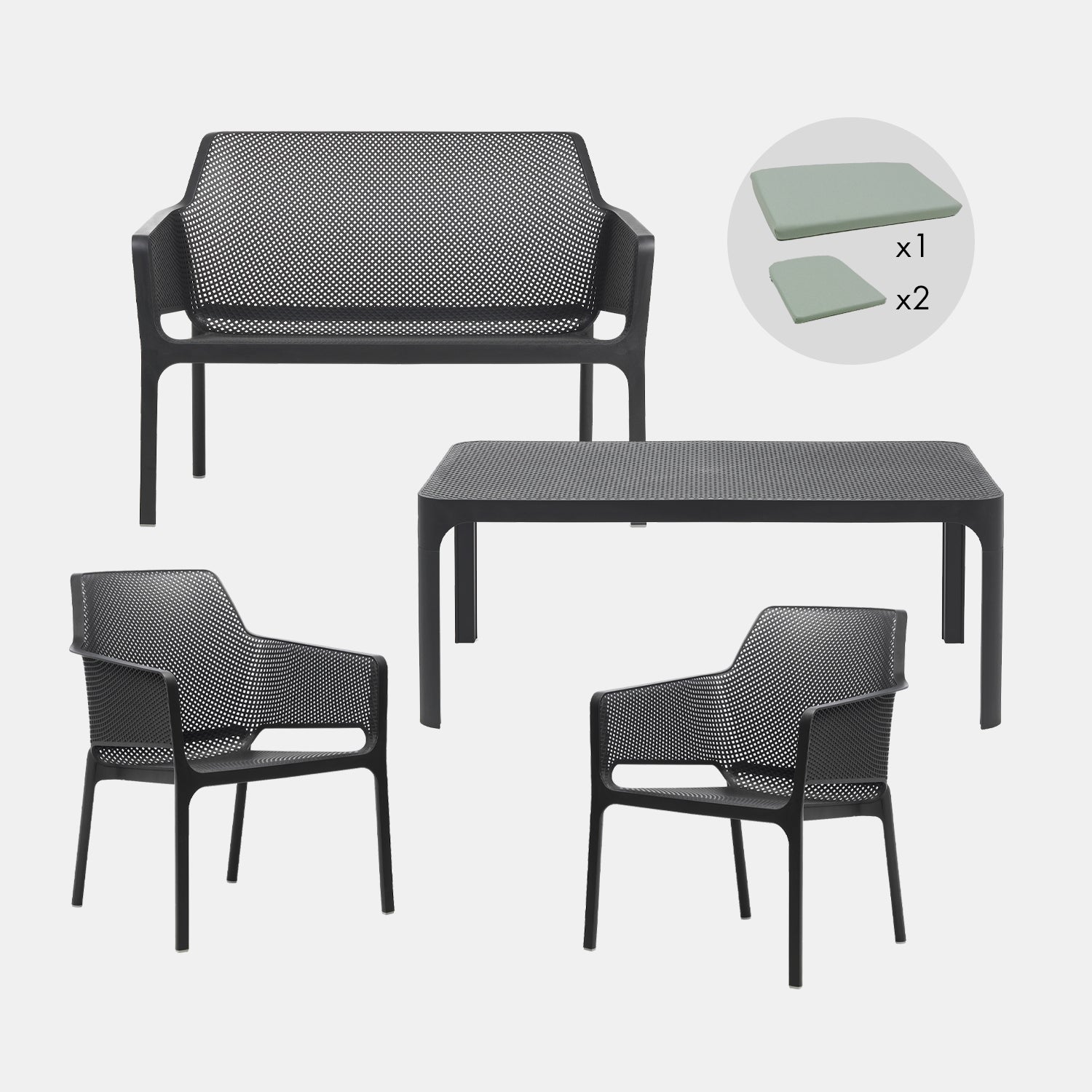 Garden Set - Net Table, Bench, x2 Net Relax Chairs & Cushions