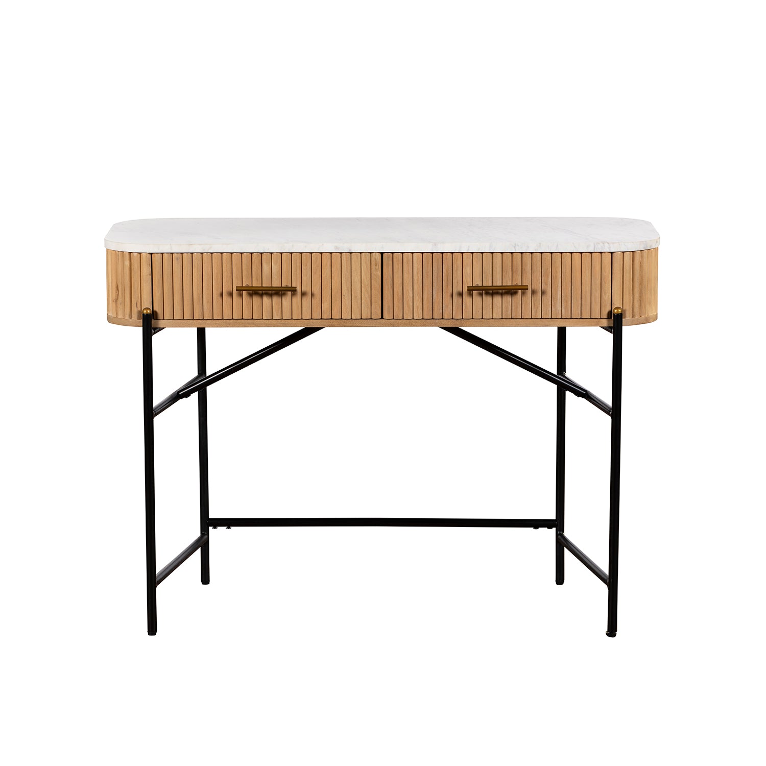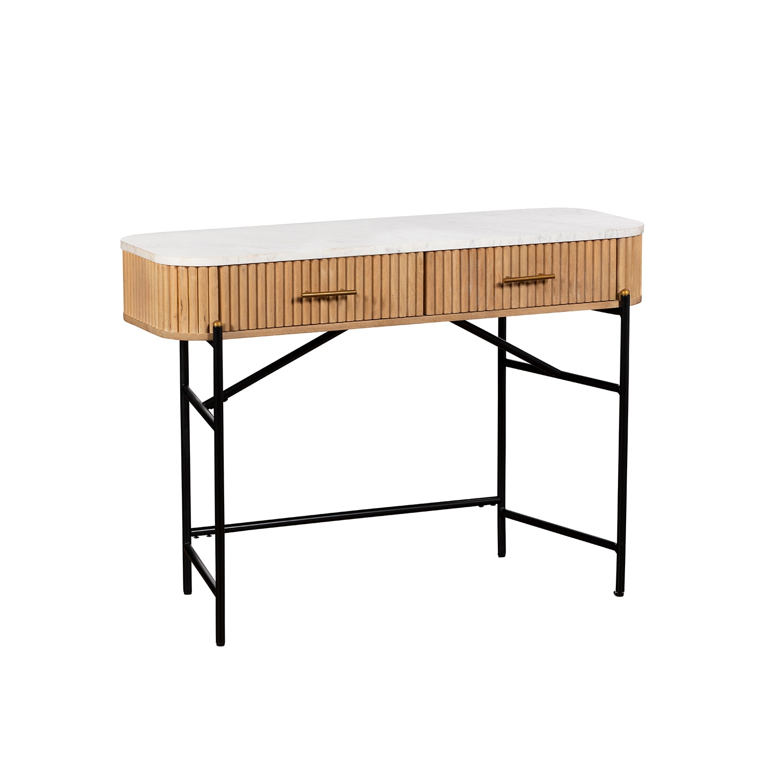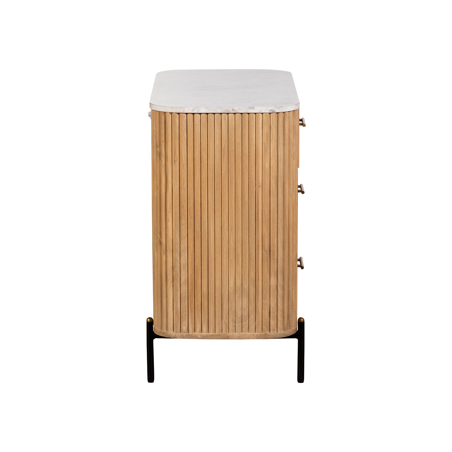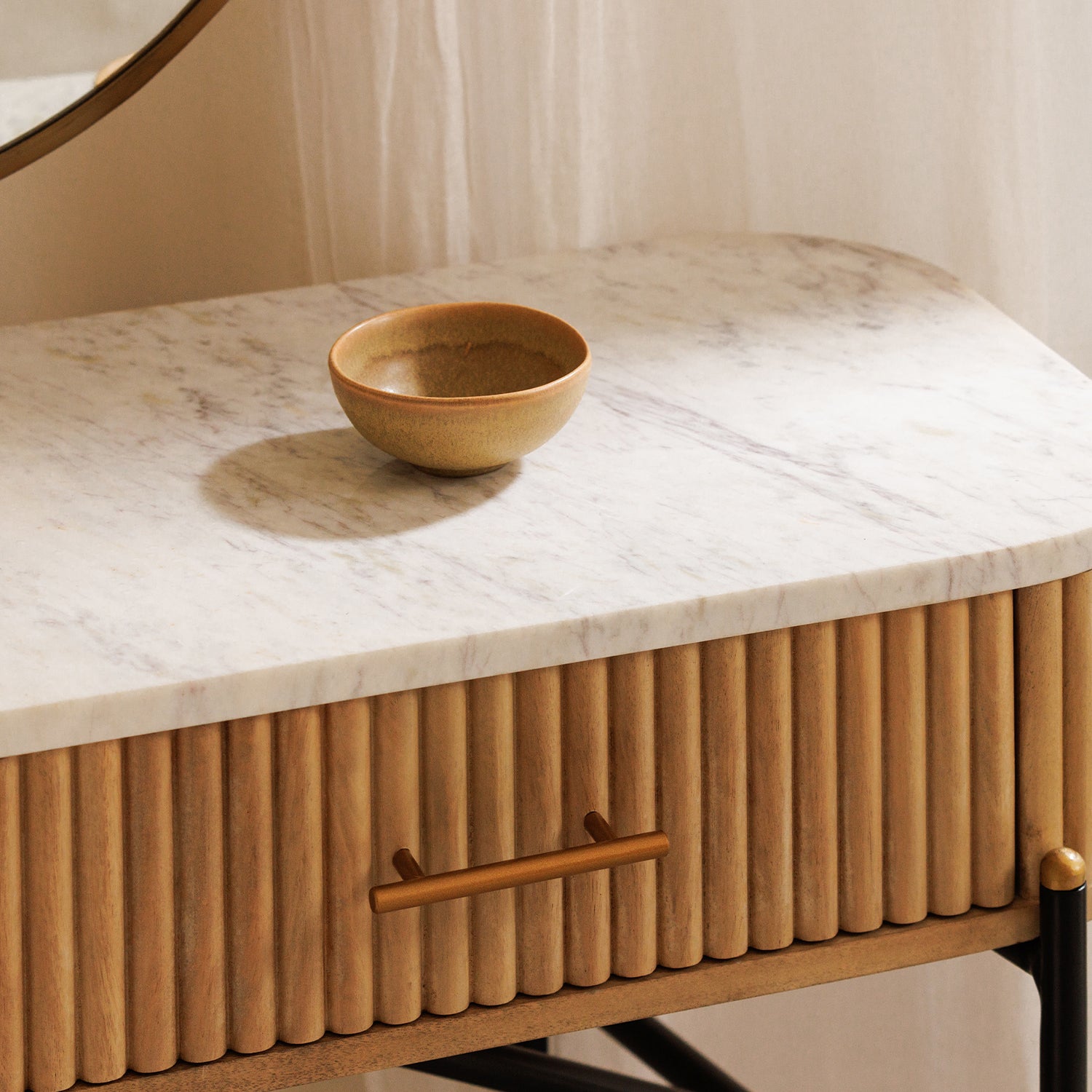 Slatted mango wooden bases & beautiful marble tops gives the St Agnes bedroom collection a Scandi vibe.