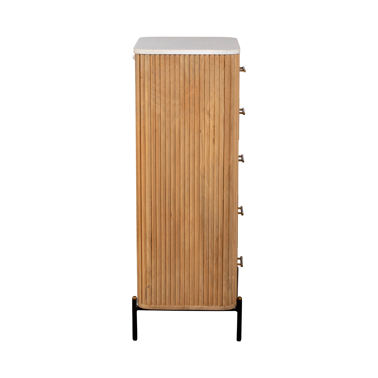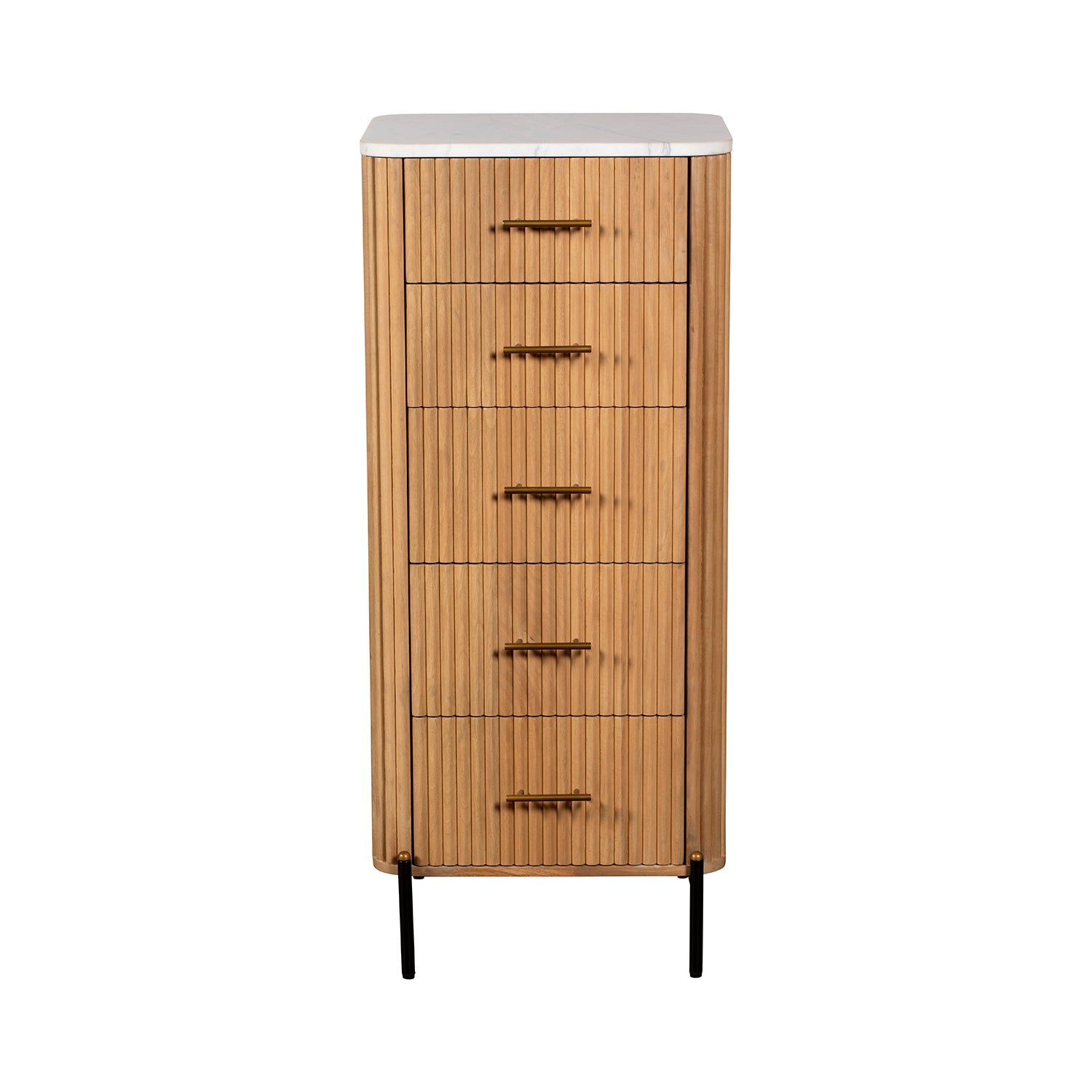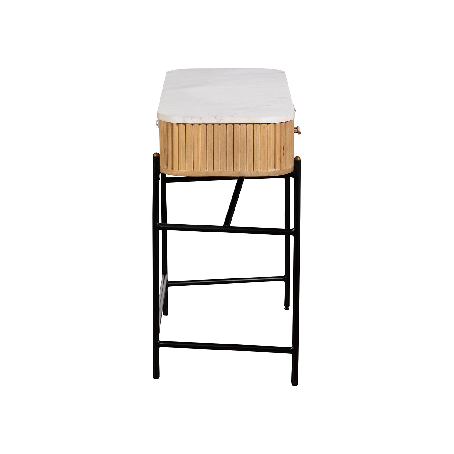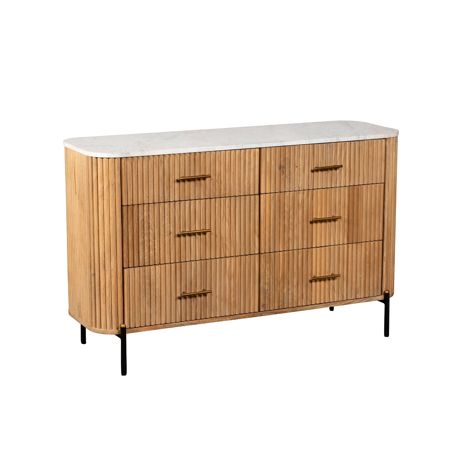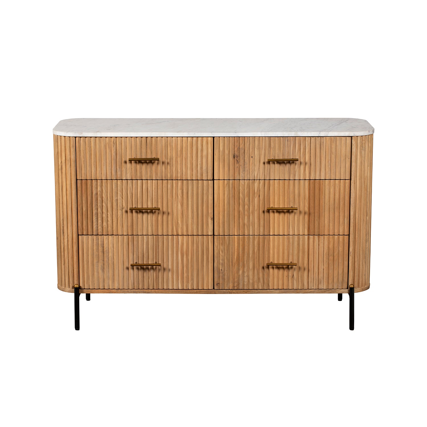 Slatted mango wooden bases & beautiful marble tops gives the St Agnes bedroom collection a Scandi vibe.
