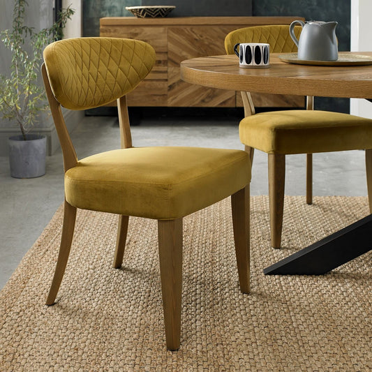 Tooting Rustic Oak Dining Chair - Dark Mustard Velvet