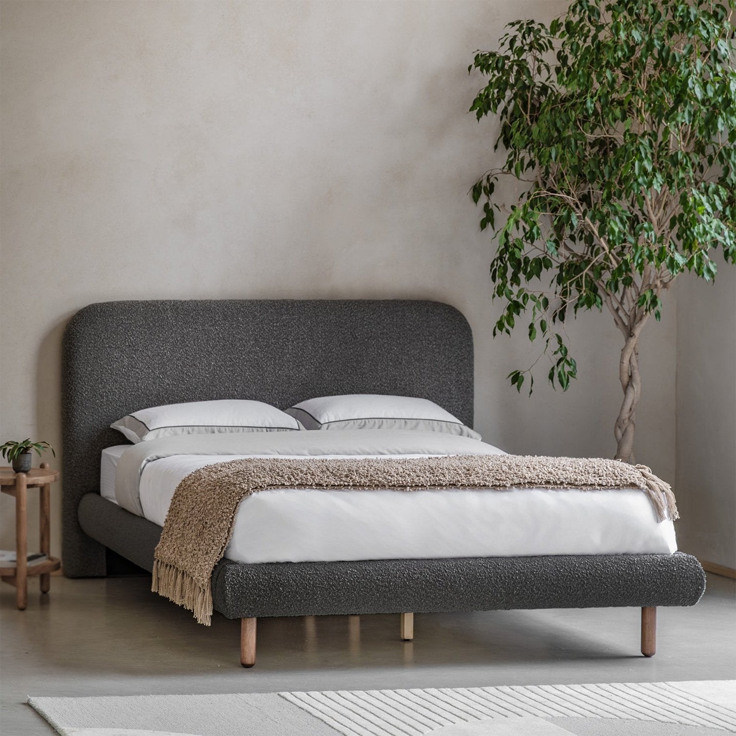 The Amia 4ft6 Double Bed in Charcoal offers a sleek and modern design, perfect for any bedroom. Made with a durable blend of MDF, polyester, foam, wood slats, and iron, this bed provides both comfort and stability. With full assembly required, it's a great choice for anyone looking for a stylish and functional bed.