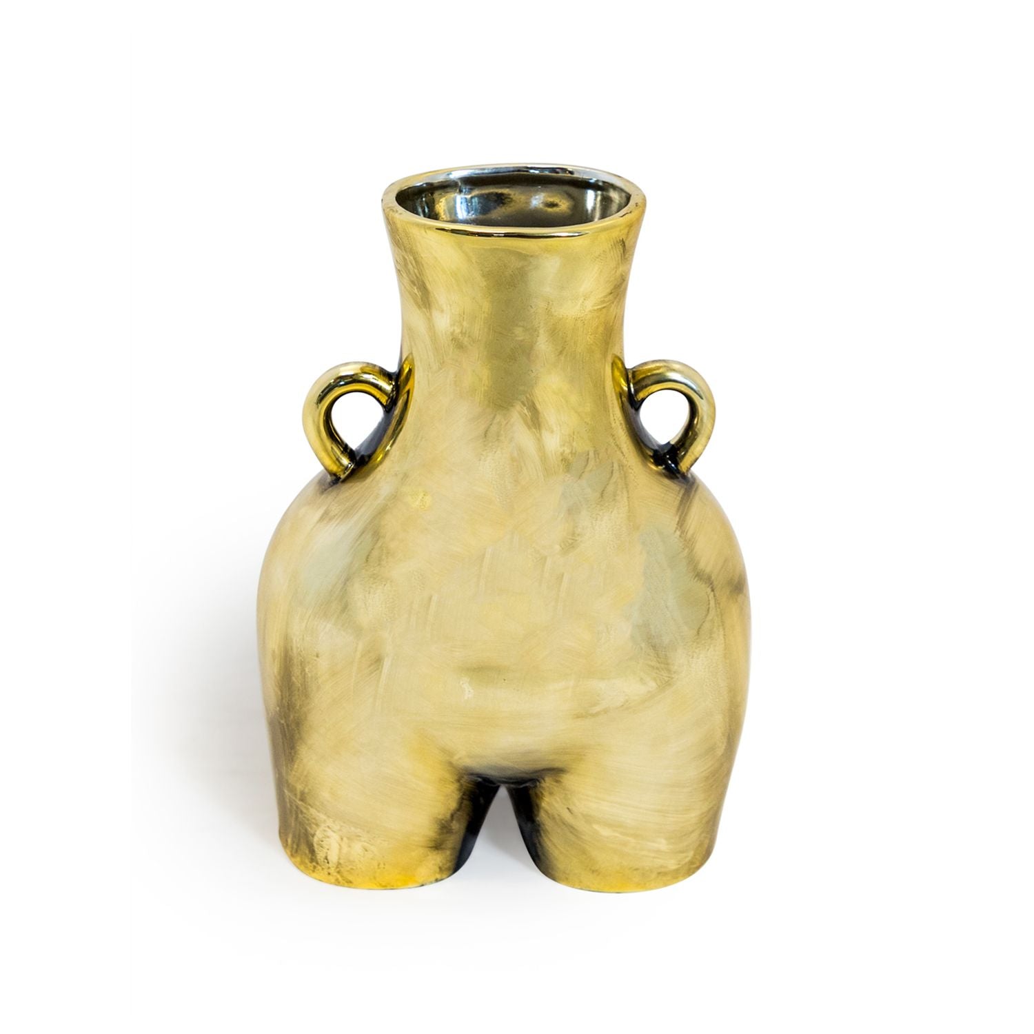 Introducing our antique large love handles booty vase - gold! This eye-catching addition to any home will get everyone talking! Featuring love handles on both sides and a unique booty shape, you'll be sure to make a statement with this gold vase, perfect for displaying your favourite flowers!