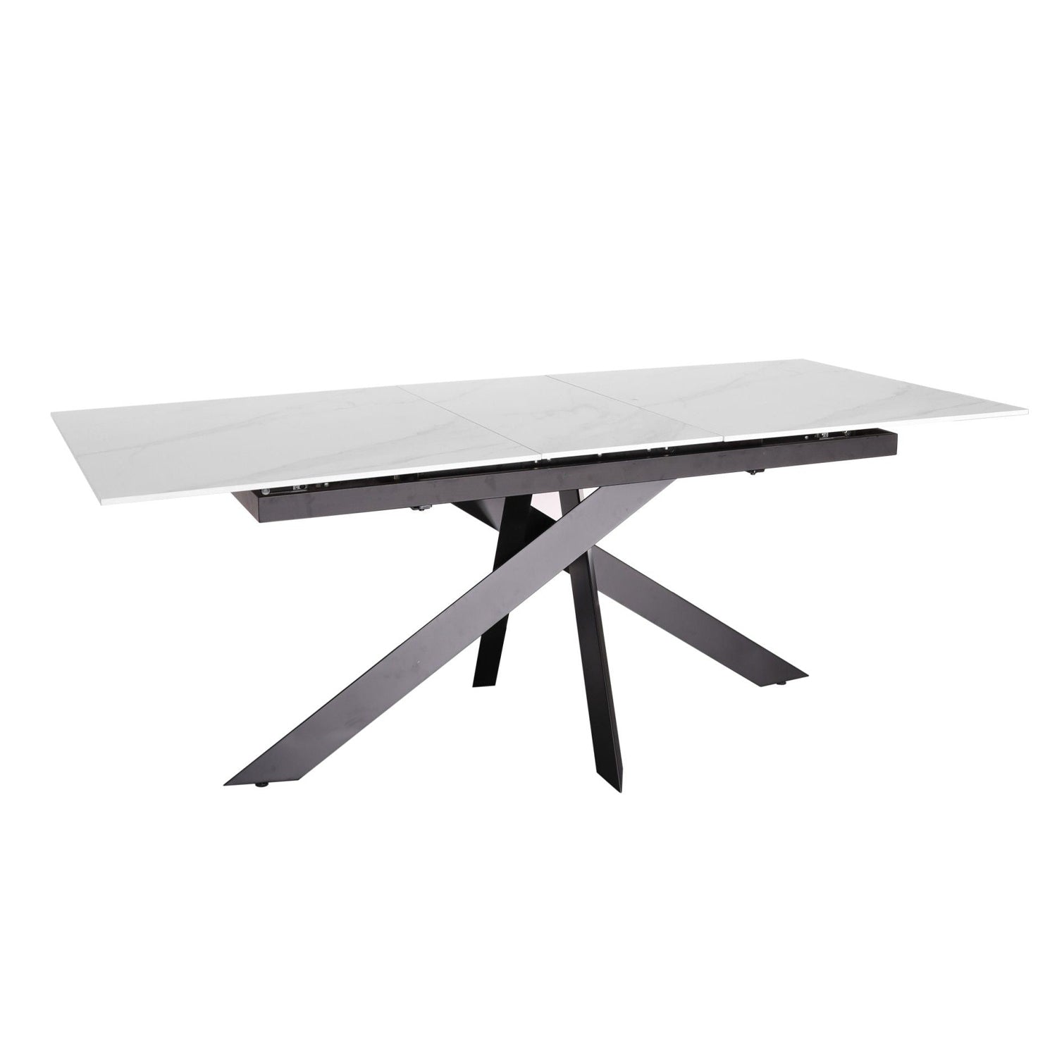 This Bilbao extending table is an ideal centrepiece for your dining room. Made from high quality stone, it is built to last. The attractive metal legs contrast the stone top for a modern look that is both popular and stylish. The extending feature makes it easy to accommodate additional guests.