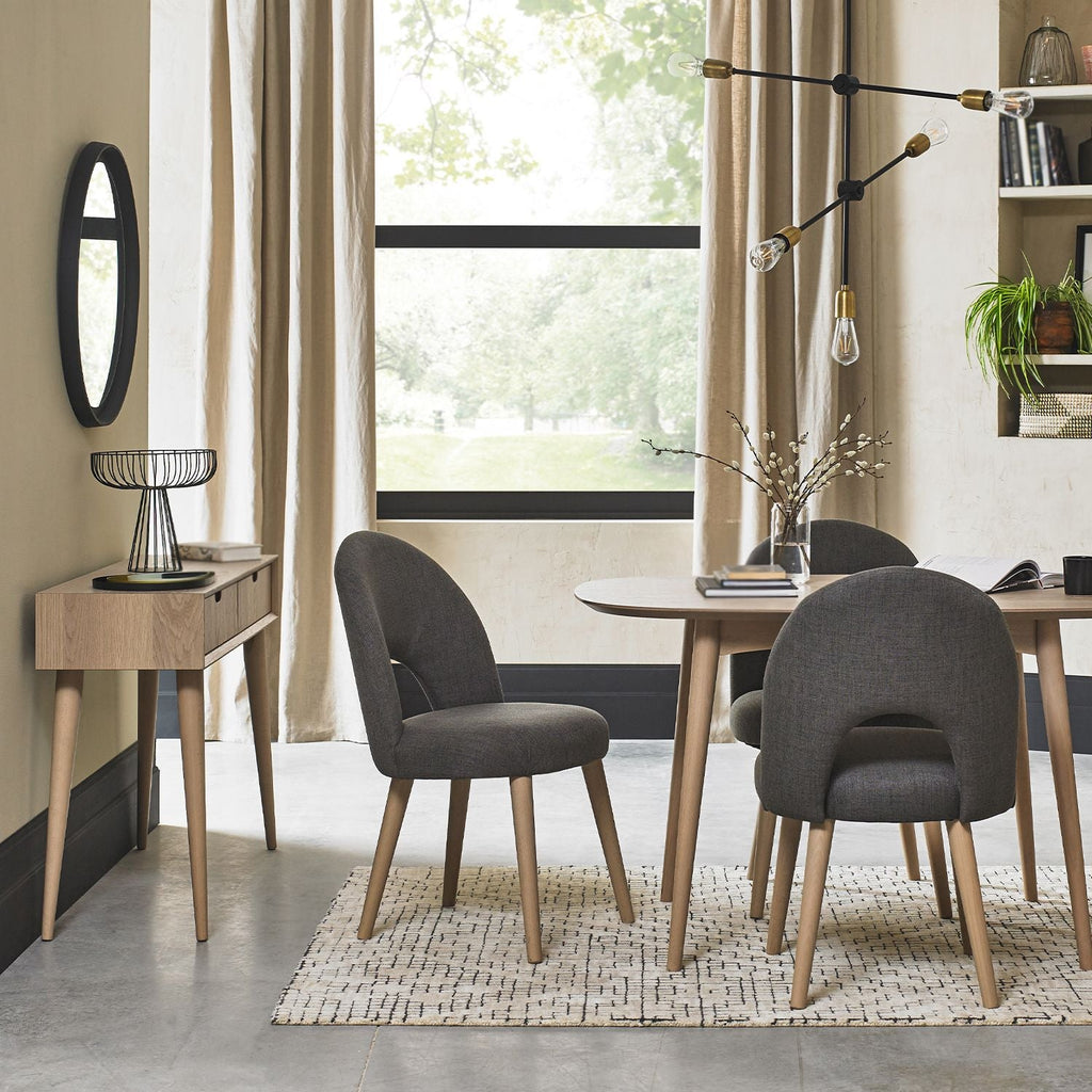 Modern and understated, the Copenhagen Scandi Oak Dining Table is the perfect addition to any contemporary dining space. Made of white oak veneer and beech solids, its sleek lines and 4-seater capacity make it a great choice for intimate family dinner parties. Enjoy the look and style of a traditional Scandinavian influence with this chic dining table.