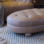 The Croissant Oval Buttoned Stool is a modern Chesterfield design featuring a deep buttoned stool with shapely curves. Made for comfort and durability, this piece is sure to add timeless style to your home.
