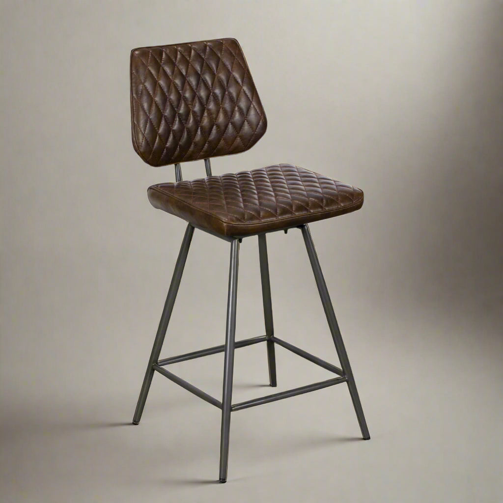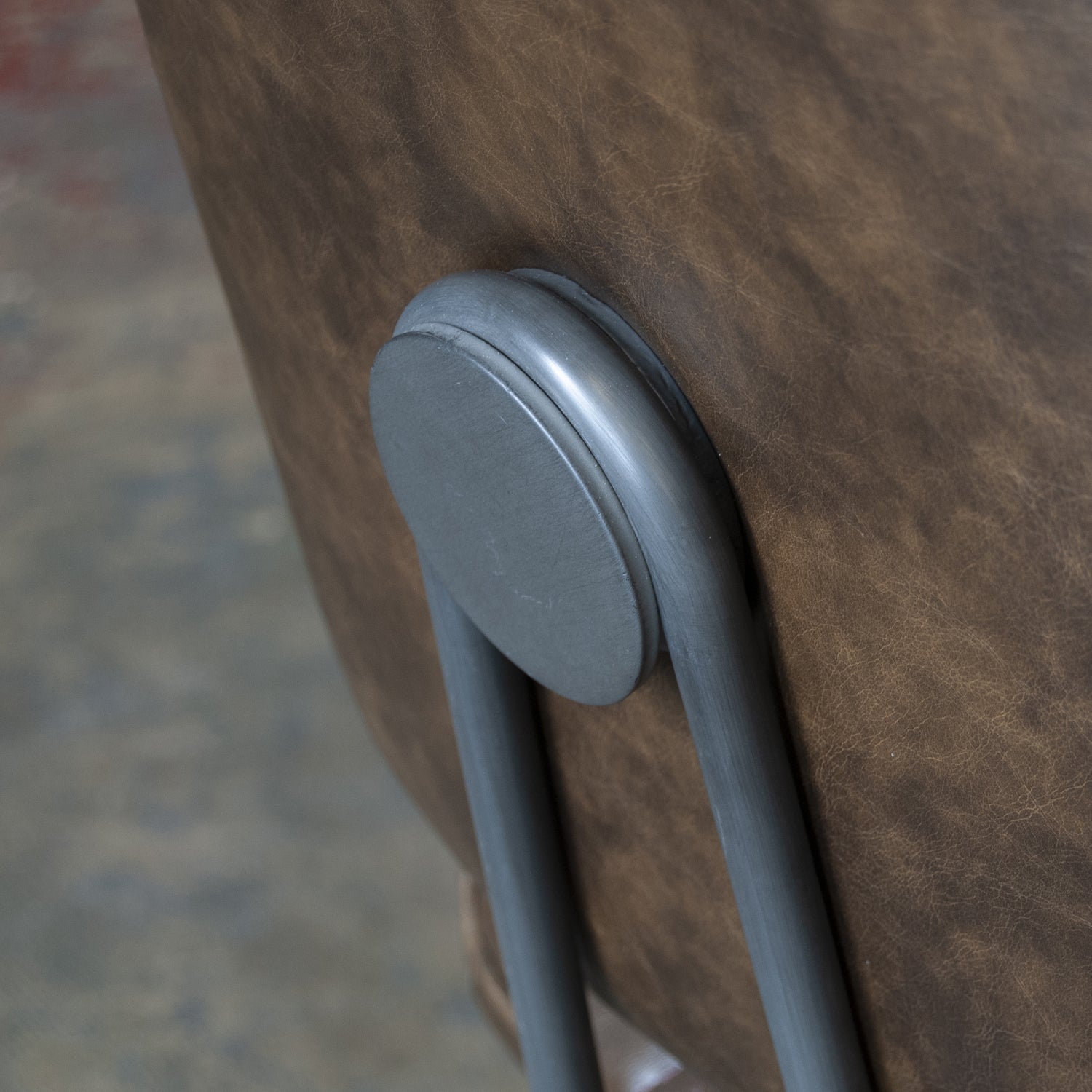 This attractive, modern bar stool has been designed with a young market in mind and will blend in beautifully with today's lifestyle. The rich dark brown upholstery makes a strong contrast against the steel grey legs and frame.