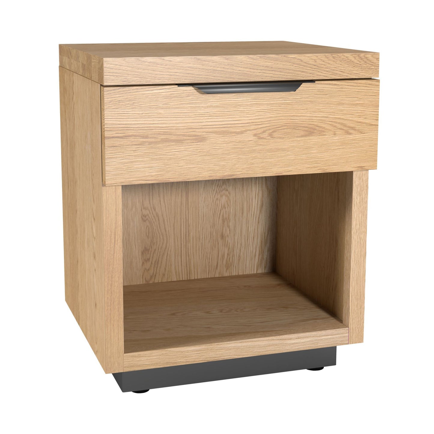 The Elsworthy oak one drawer bedside cabinet provides that essential place for your clock, lamp and drink. A single full width drawer is included for accessories which runs on a smooth ball bearing mechanism. An open cupboard underneath will store spare bed linen or other bulkier items.