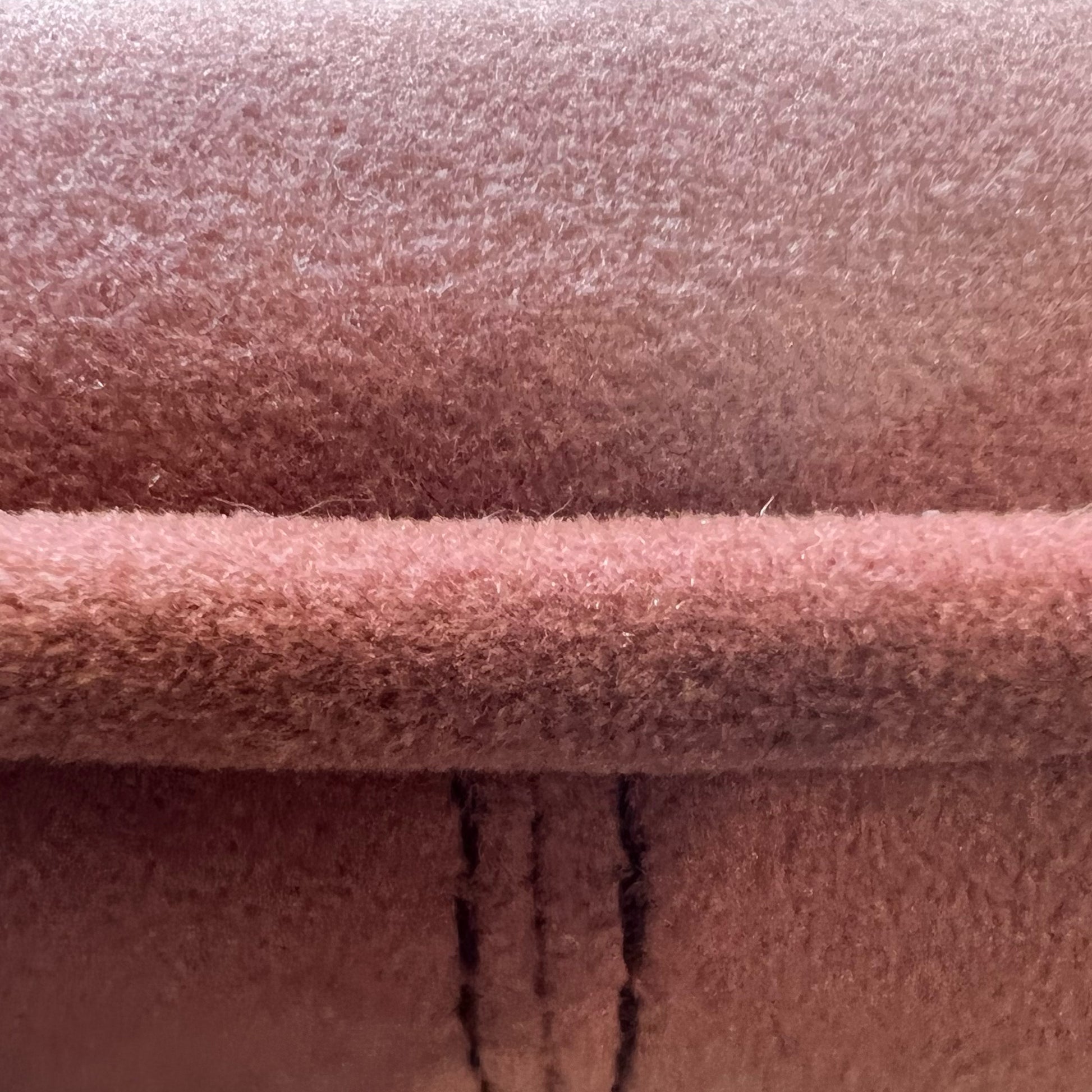 Set of 2 salmon pink dining chairs. Industrial styled, smooth fabric seat with metal legs. Mix & match with more colours. Instock with fast UK mainland delivery.