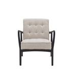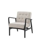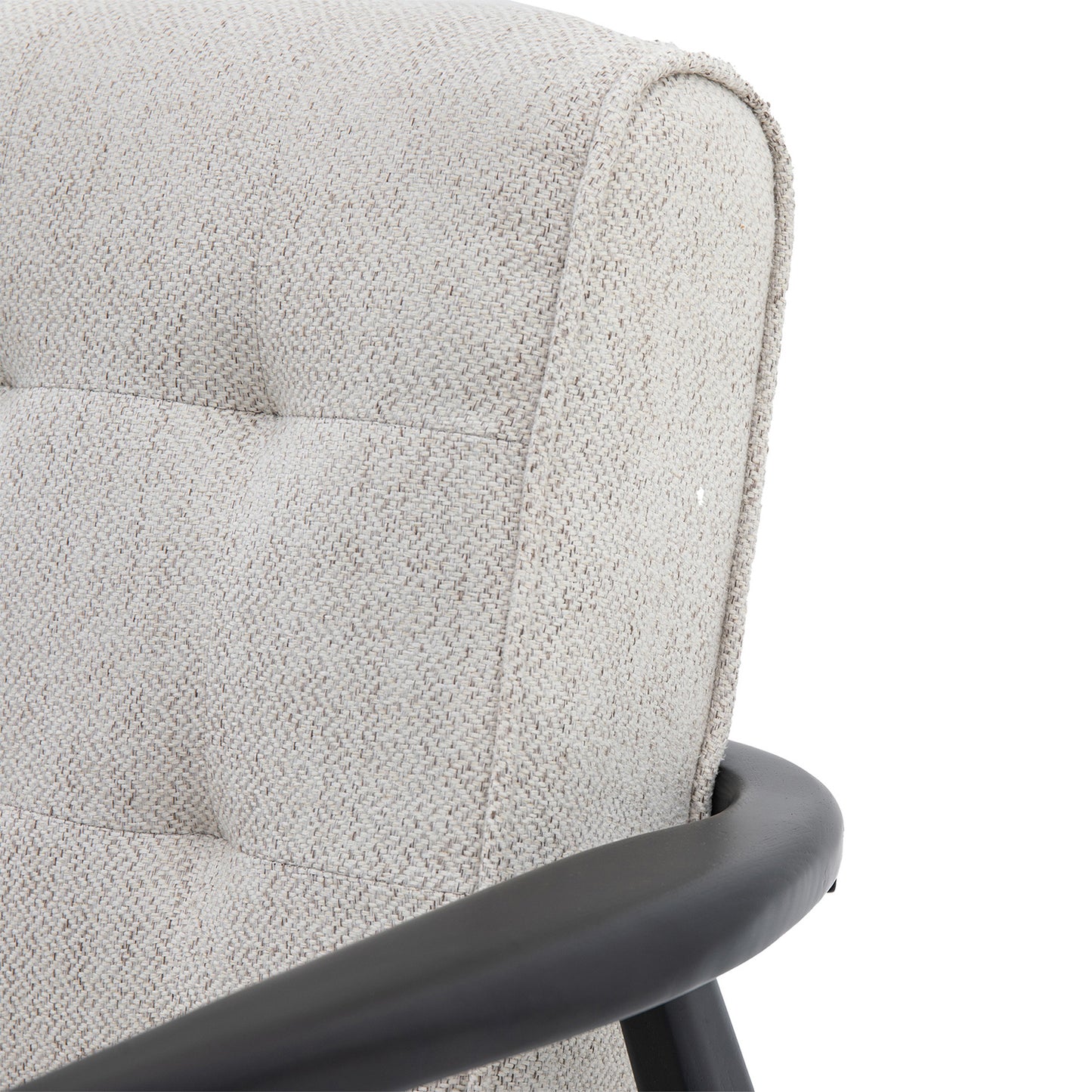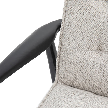 The Gilbert Armchair in Natural is a perfect addition to any indoor space. Made with oak and plywood, its black leg finish adds a touch of elegance. The chair's polyester, foam, and polyfibre material ensure comfort and durability. No assembly required.