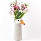 The Goose Flower Vase is a beautiful and functional piece of hand painted stoneware that adds a touch of elegance to any space. Its dishwasher safe design makes it easy to clean and perfect for everyday use. Bring nature indoors with this unique vase.
