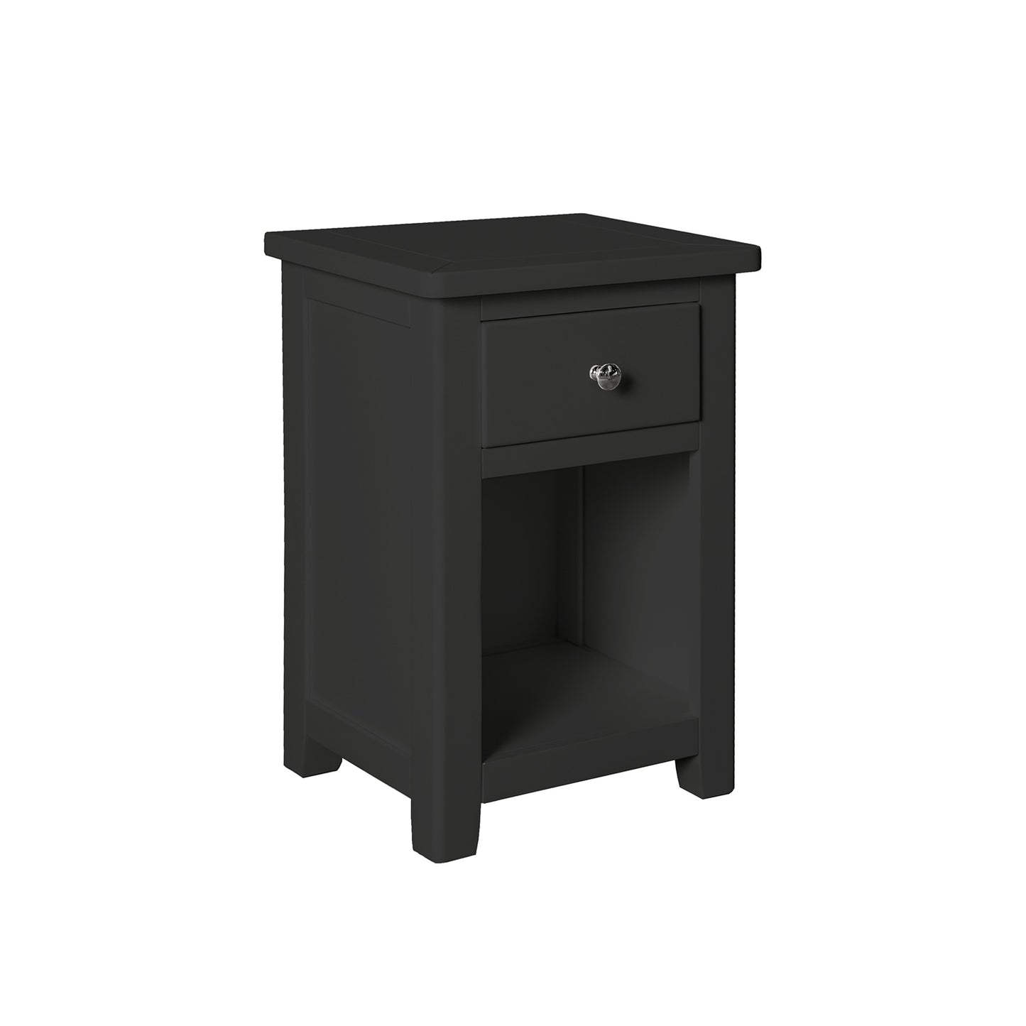 The Hambleden 1 Drawer Bedside in charcoal adds a touch of modernity to your bedroom. The painted finish and contemporary design create a chic and elegant atmosphere. Keep your essentials close at hand in the convenient drawer. Complete your bedroom furniture with this stylish piece.