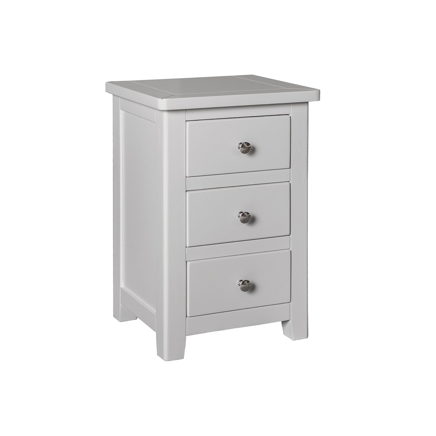 The Hambleden 3 Drawer Bedside in grey is a practical and stylish addition to any bedroom. With a contemporary design and painted finish, it offers both functionality and aesthetic appeal. Its three spacious drawers provide ample storage space, making it the perfect piece of bedroom furniture for a clutter-free space.