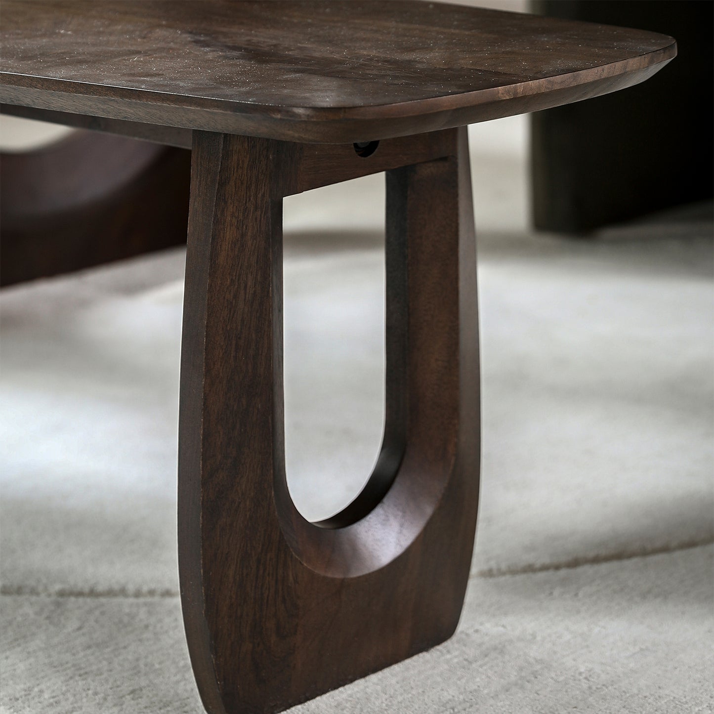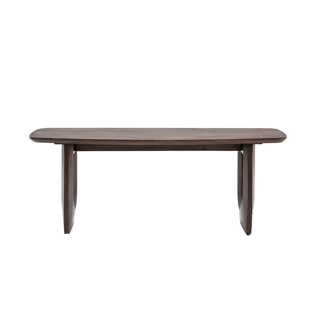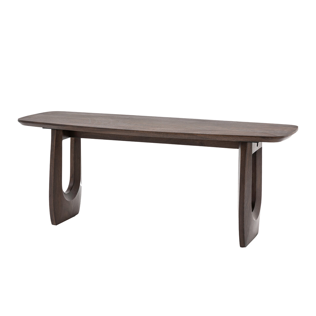 Introducing our luxurious Lilia dining bench in rich Walnut. With its bold and retro design, this bench is an ideal addition to your 70s inspired interior. Featuring striking U-shaped carved legs and darkly stained mango wood, it pairs superbly with our matching dining table. Complete your exclusive look with our coordinating pieces.