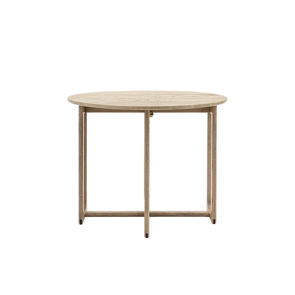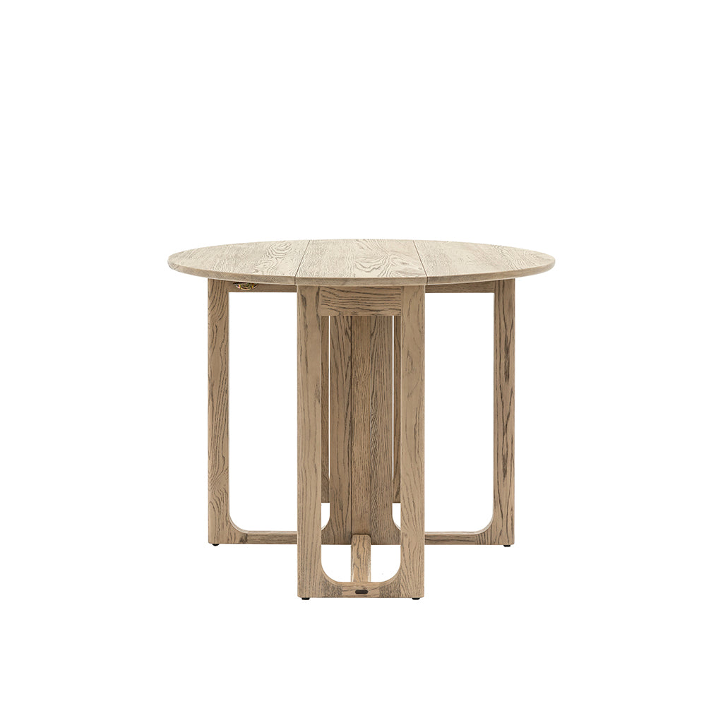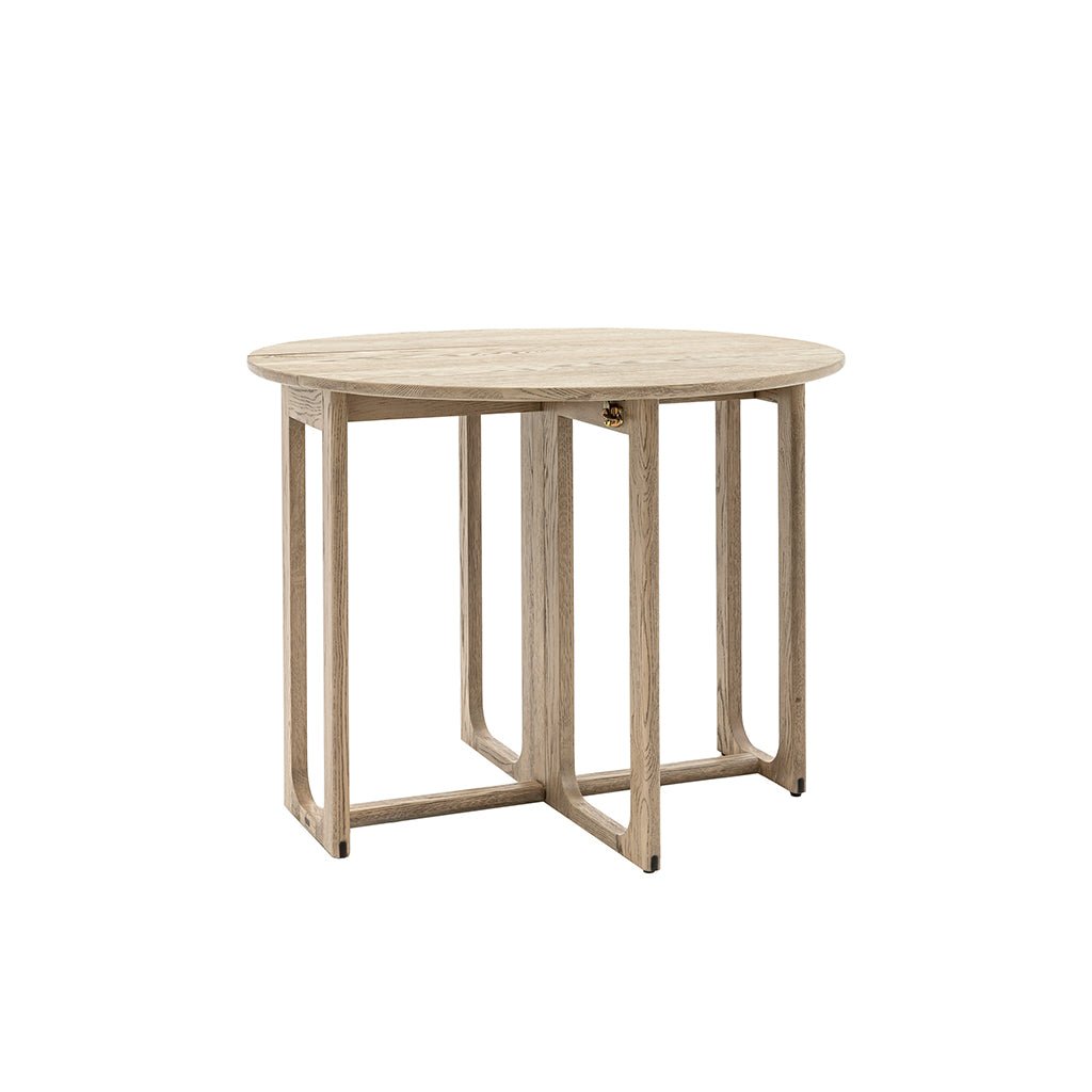 Indulge in luxury with the Maurice Folding Dining Table. Expertly made from the finest oak and veneers, this table exudes elegance with its simple round top and beautifully shaped underframe. With a convenient folding feature, it's great for hosting exclusive dinners. Choose from a smoked or natural finish and complete your dining set with matching chairs.