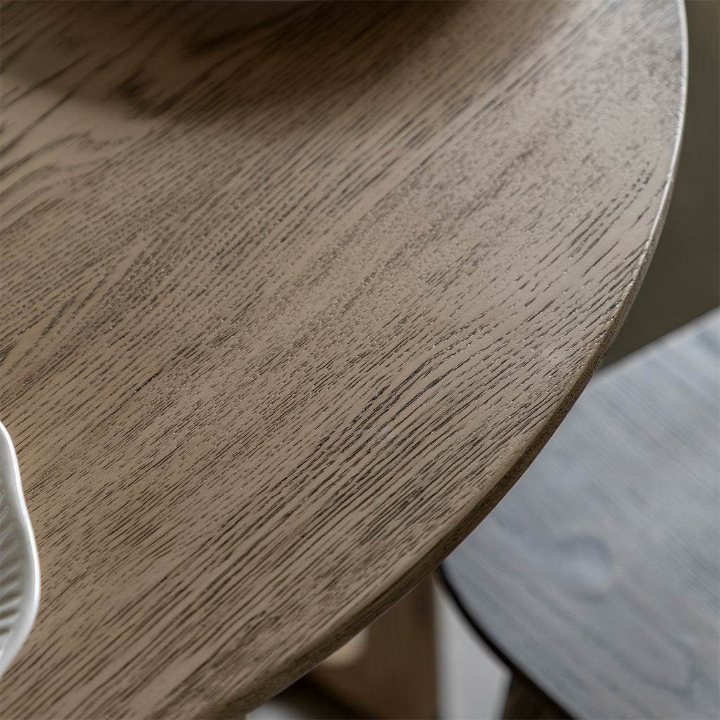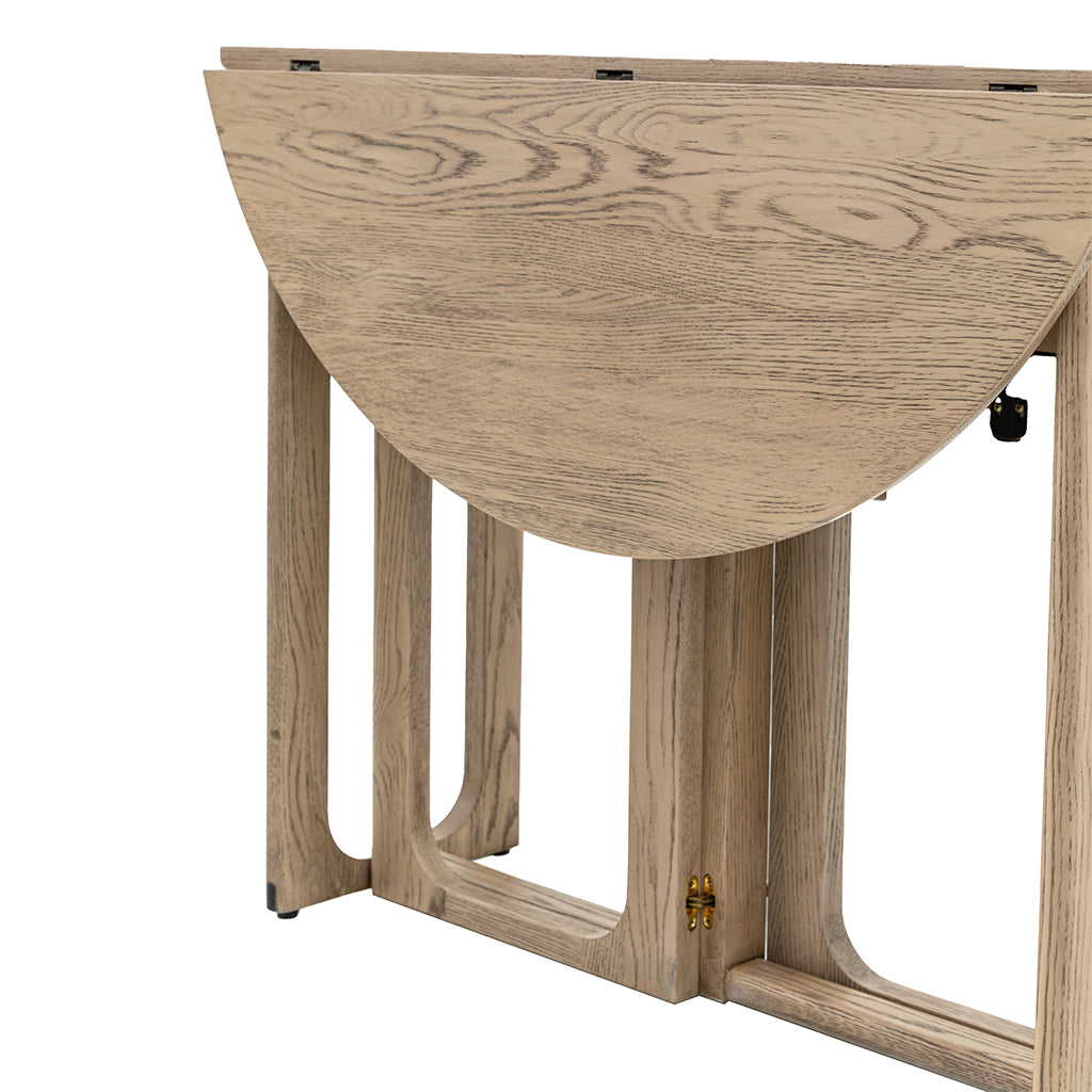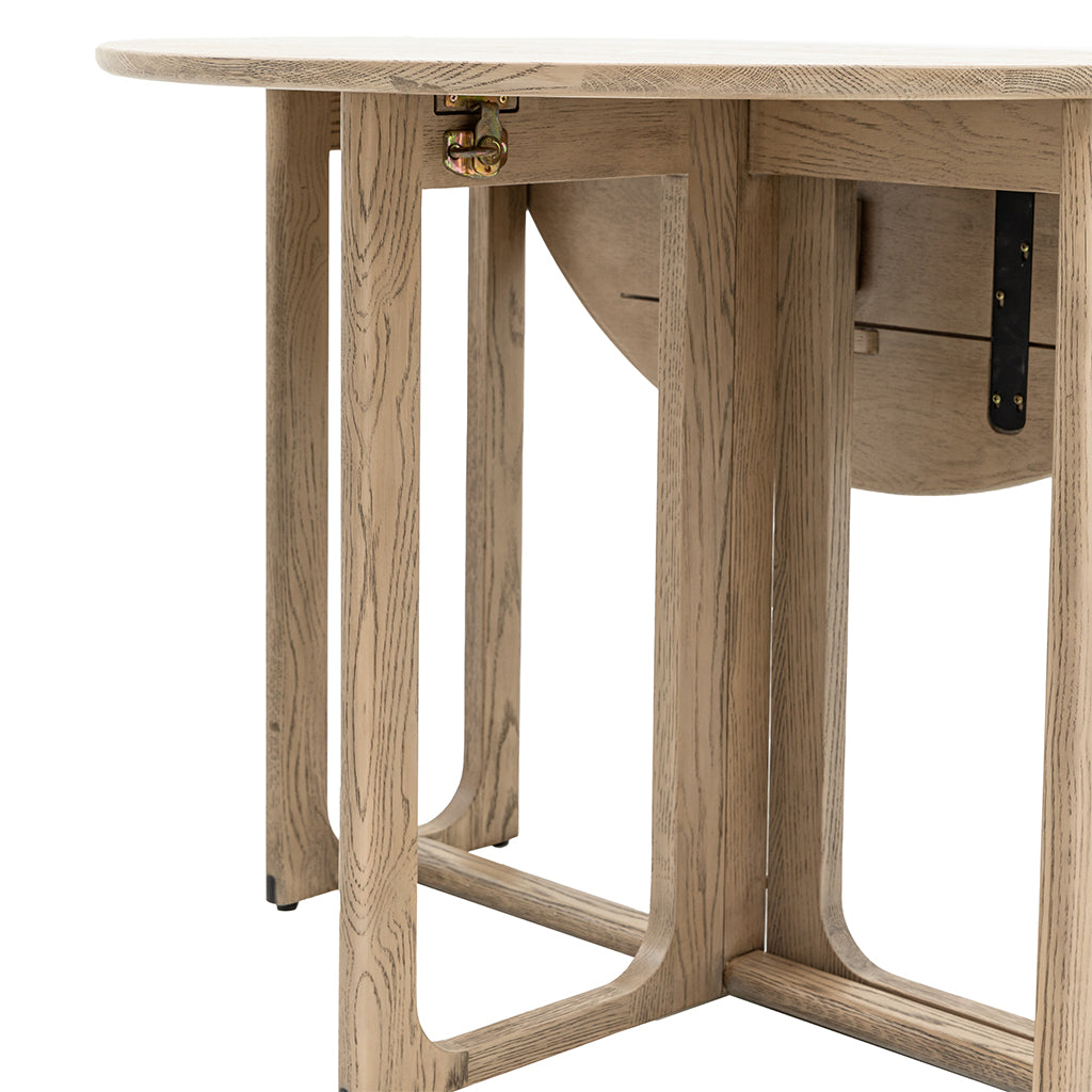 Indulge in luxury with the Maurice Folding Dining Table. Expertly made from the finest oak and veneers, this table exudes elegance with its simple round top and beautifully shaped underframe. With a convenient folding feature, it's great for hosting exclusive dinners. Choose from a smoked or natural finish and complete your dining set with matching chairs.