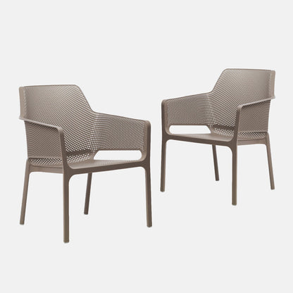 Indulge in the sophisticated and exquisite set of 2 Net Relax garden chairs by Nardi Outdoor. This premium chair boasts a radial square perforation pattern, adding a touch of artistic elegance to its matt finished surface. Treat yourself to the multi-award winning fiberglass resin armchair, accompanied by matching fabric cushions, available in a variety of shapes. Its tactile surface is sure to provide a pleasant and luxurious seating experience.