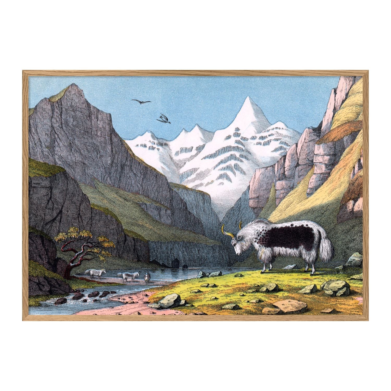 This high-quality art print showcases a yak against an oak frame. Printed with Japanese ink on a matte paper, this stylish piece is perfect for adding a contemporary touch to any space. Its striking animal feature makes it a great conversation starter.