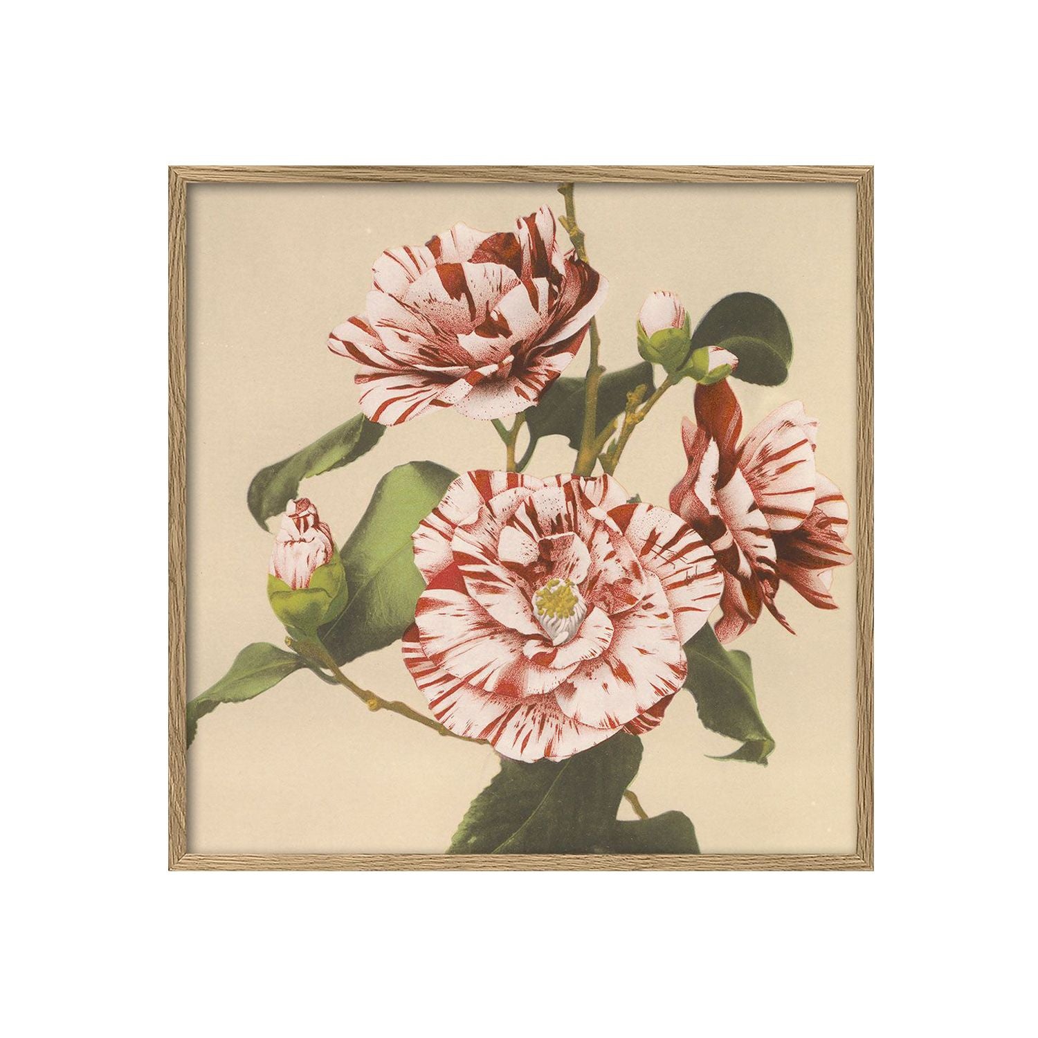 This 61cm x 61cm framed print features a stunning striped Camelias design sure to make a statement in any room! Printed with Japanese ink on matte paper, this stylish piece is the perfect addition for any contemporary space. The oak frame brings a classic touch to complement the bold design.