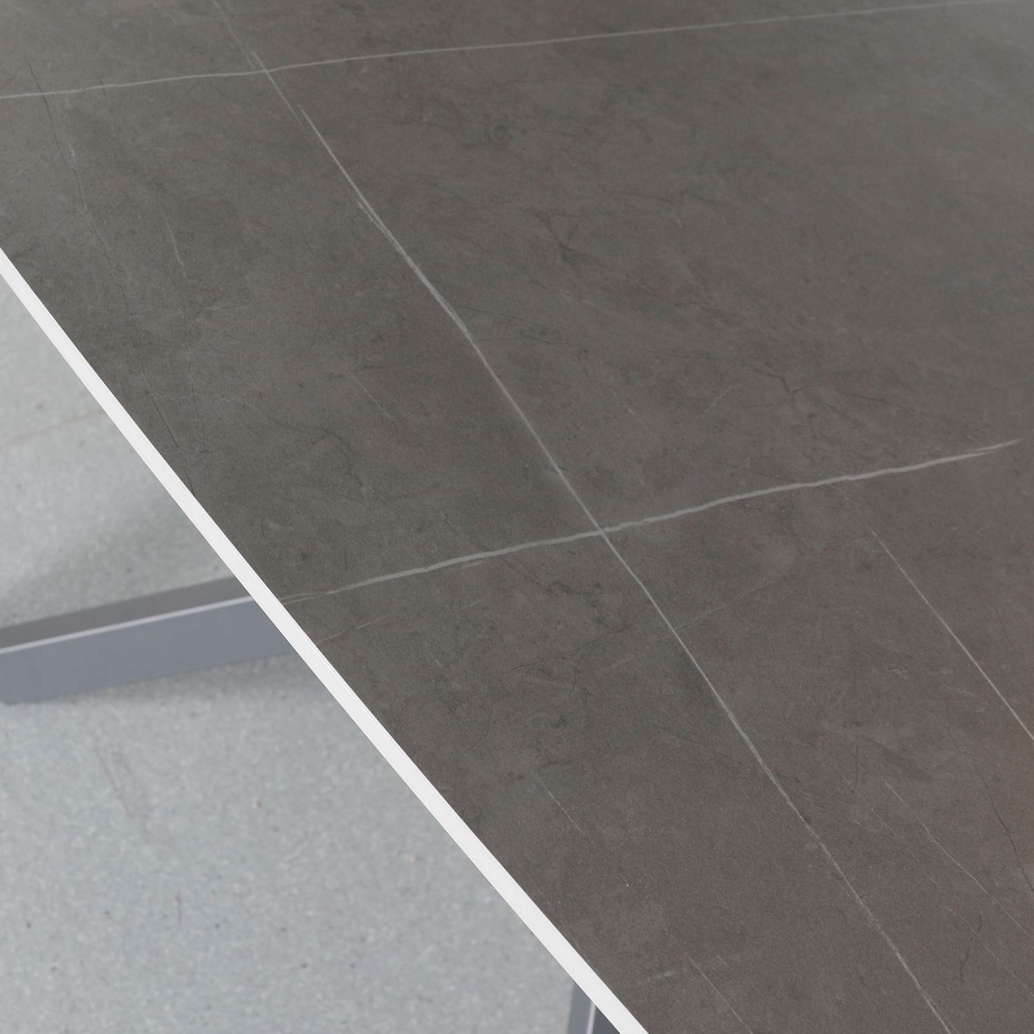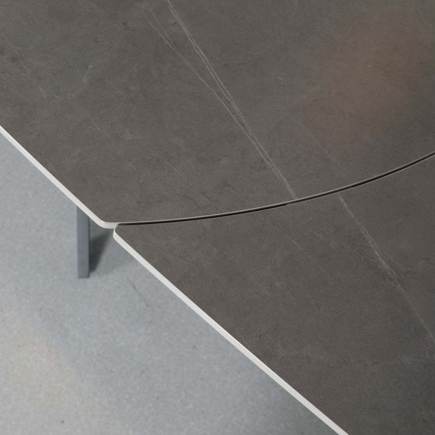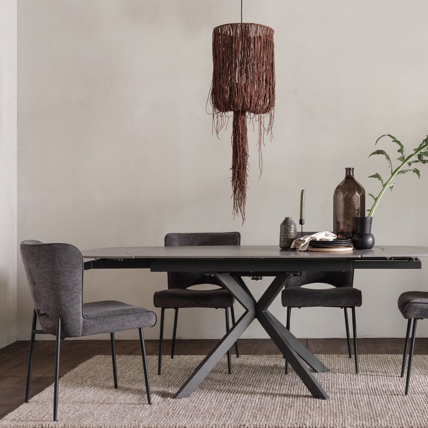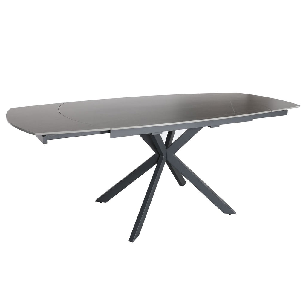 This Sintered Grey Stone Dining Table offers a contemporary, oval shape that is sure to be the highlight of any dining space. It is extendable from 140cm to 200cm, providing comfortable seating for up to 8. Its sintered grey stone top and smooth, white steel legs are designed for sophisticated elegance.