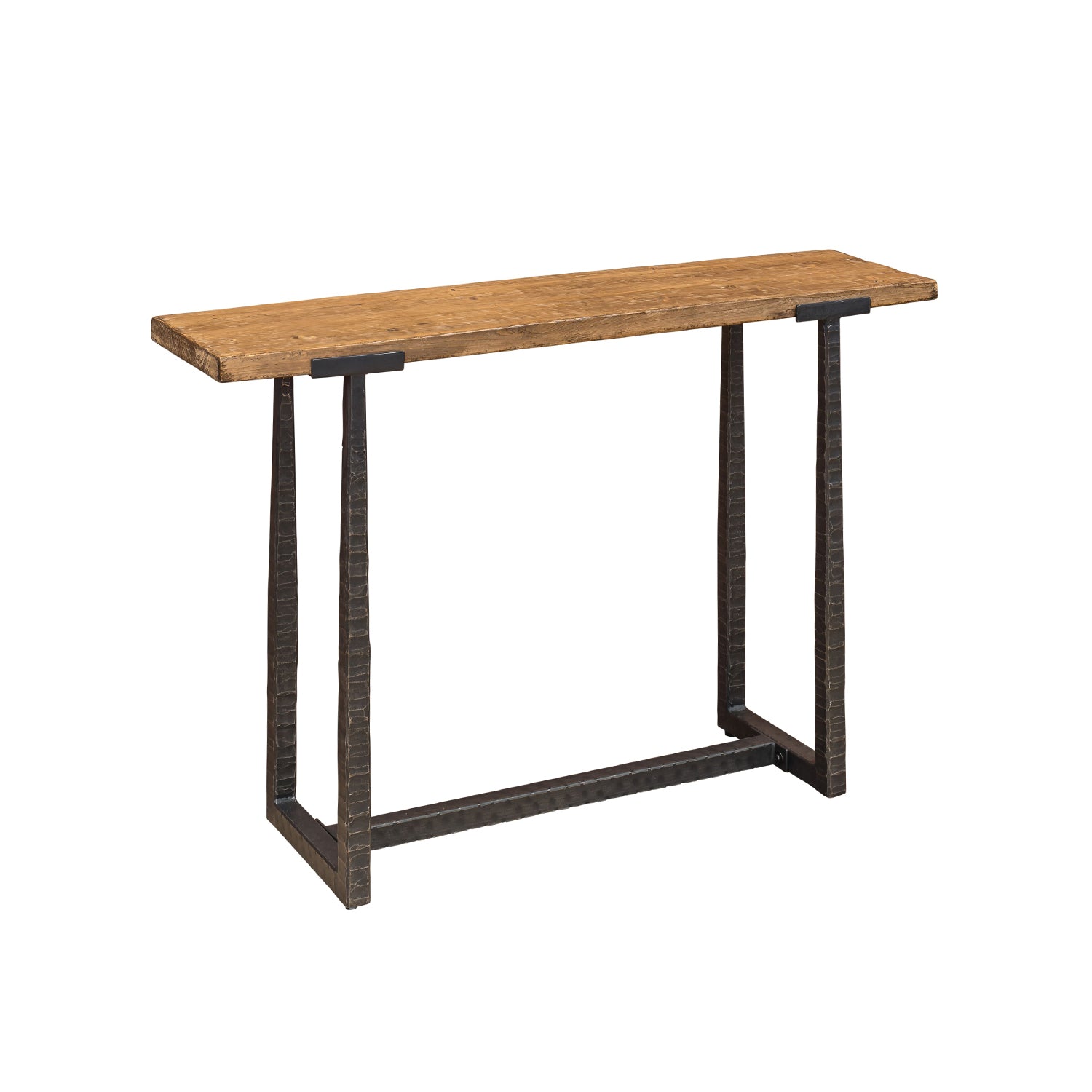 The table features exquisite hand-hammered iron detailing that frames the solid wooden top, creating a perfect balance between rustic warmth and contemporary industrial style. Its slender profile makes it ideal for hallways, entryways, or behind sofas, while providing practical surface space for displaying decorative items, family photos, or everyday essentials.